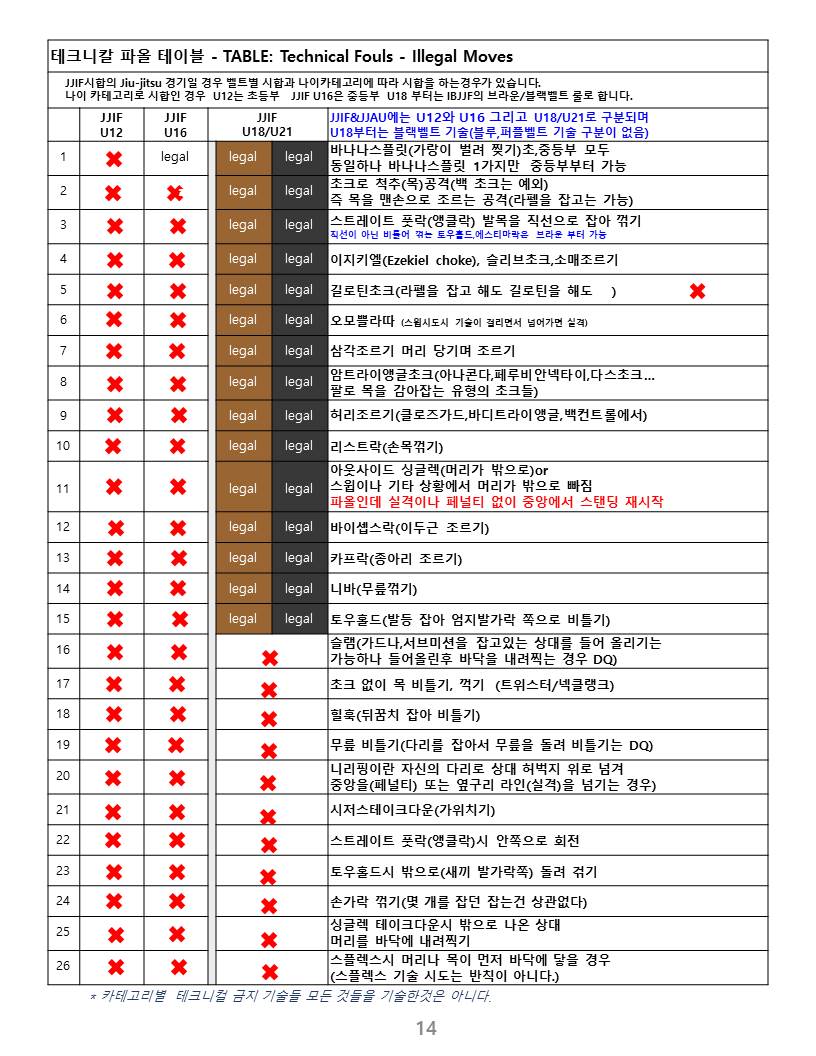 ○ 계체는 도복미착용 계체, 래쉬가드(반팔티) 및 반바지, 당일계체, 허용기술은 아래 그림참고