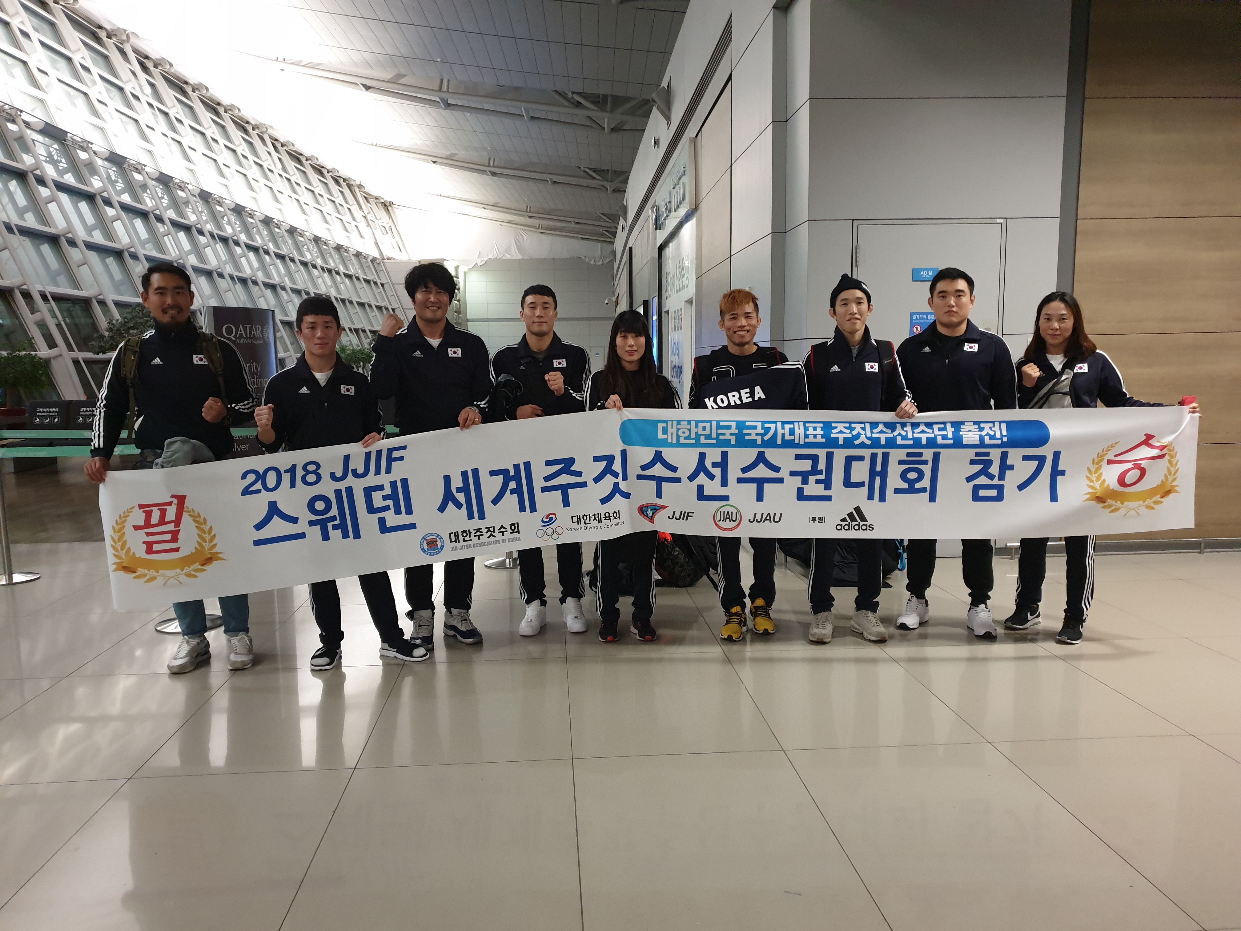 아시안게임의 감동을 뒤로 하고 대한민국 주짓수국가대표선수단이 세계선수권대회가 열리는 스웨덴 말뫼로 출국했습니다.
