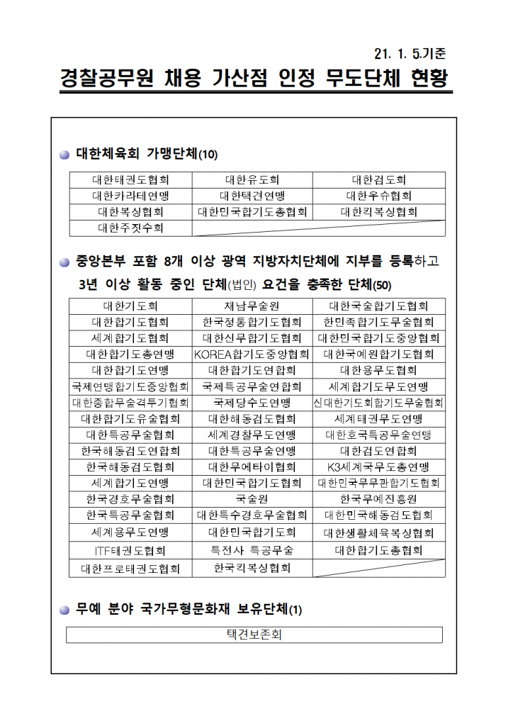 "사단법인 대한주짓수회" 경찰 가산점 인정단체 승인 페이지 정보 작성자 최고관리자 댓글 0건 조회 6,694회 작성일 21-01-18 15:21 목록 본문 이전글2021년도 선수,지도자,심판, 동호인 등록신청 메뉴얼 21.01.19 다음글제4대 사단법인 대한주짓수회 당선인 공고 20.12.08