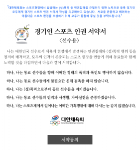 이에따라 <스포츠인권서약서>의 도입내용을 안내하오니 모두의 인권과 인격이 존중되는 스포츠 현장을 조성하는 데에 적극 협조해주시기 바랍니다.