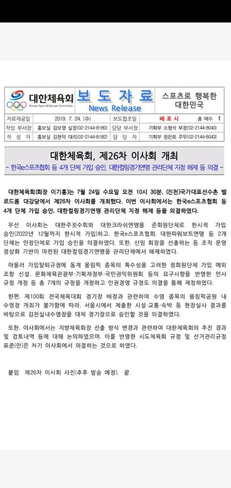 대한체육회, 제26차 이사회 개최 페이지 정보 작성자 대한주짓수회 댓글 0건 조회 4,943회 작성일 19-07-29 10:01 목록 본문 대한체육회, 제26차 이사회 개최 제26차 이사회를 통해 대한주짓수회가 대한체육회에 준가맹(2022년까지 한시적 준가맹)되었습니다. 이제 본 회는 정식 준가맹과 정가맹을 위해 더욱 노력해야 할 시점에 있습니다. 이에 따른 임시 이사회 및 임시 총회는 사무처가 각 심의사항 토의사항을 취합 정리하여 상정토록 하겠습니다. 이전글심판강습 및 지도자강습 예고 안내 19.09.09 다음글2022년 항저우아시안게임 파견선수 선발계획 19.06.11